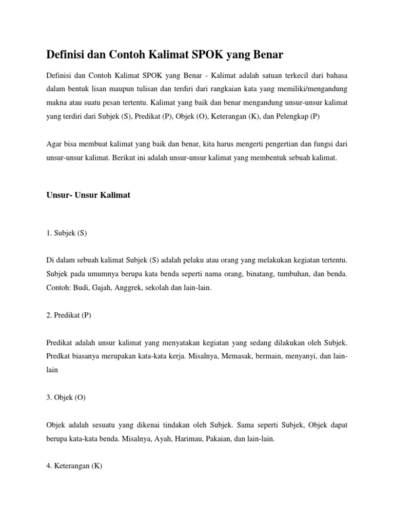 Contoh Kalimat Efektif 2 from imgv2-1-f.scribdassets.com Maybe you would like to learn more about one of these? Contoh kalimat subjek, predikat objek. We did not find results for: Check spelling or type a new query.