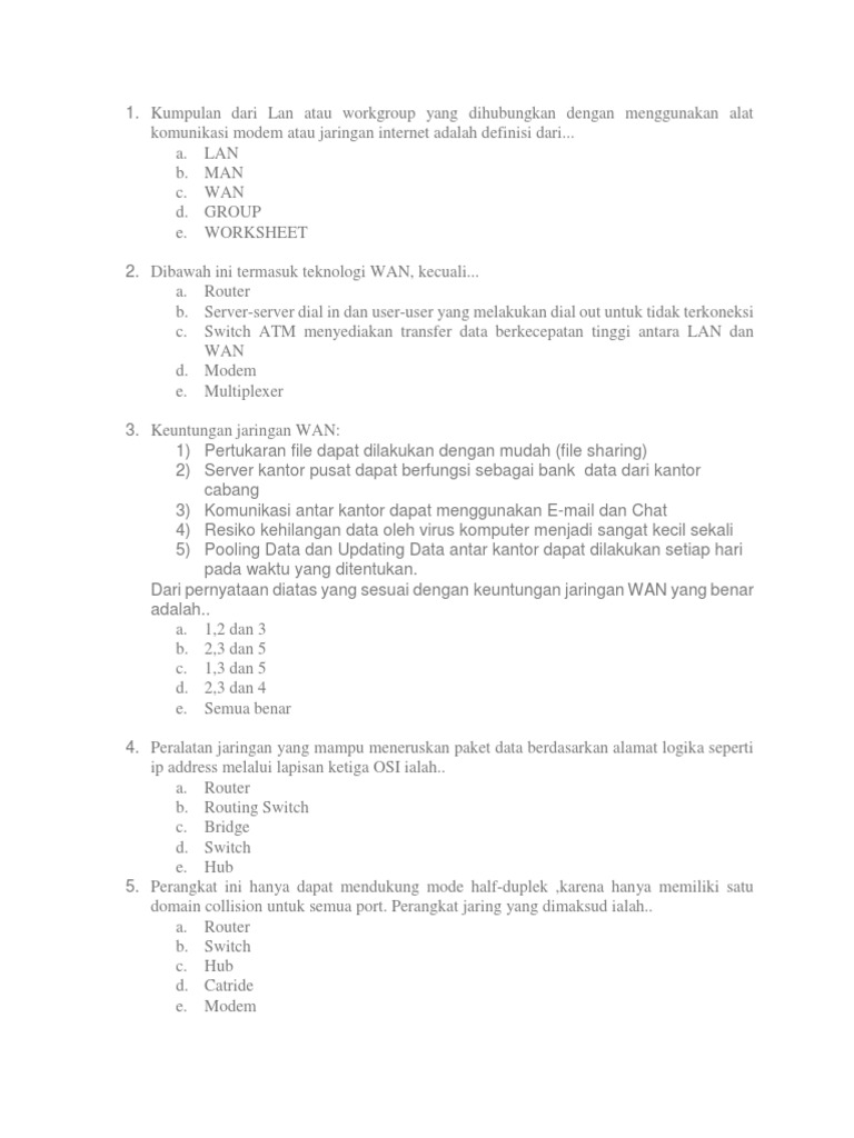 20 contoh soal dan jawaban merancang wan. Lapisan osi yang bertugas melakukan routing adalah. Lapisan aplikasi (application layer) lapisan ini bertugas untuk menyampaikan. Dari pernyataan diatas yang sesuai dengan keuntungan jaringan wan yang benar adalah. Osi layer juga merupakan gabungan dari model arsitektur di jaringan yang dikembangkan oleh badan internasional di eropa pada tahun 1977 sebagai sistem open system.yuk baca aja apa itu osi layer, fungsi osi layer, dan cara kerjanya.